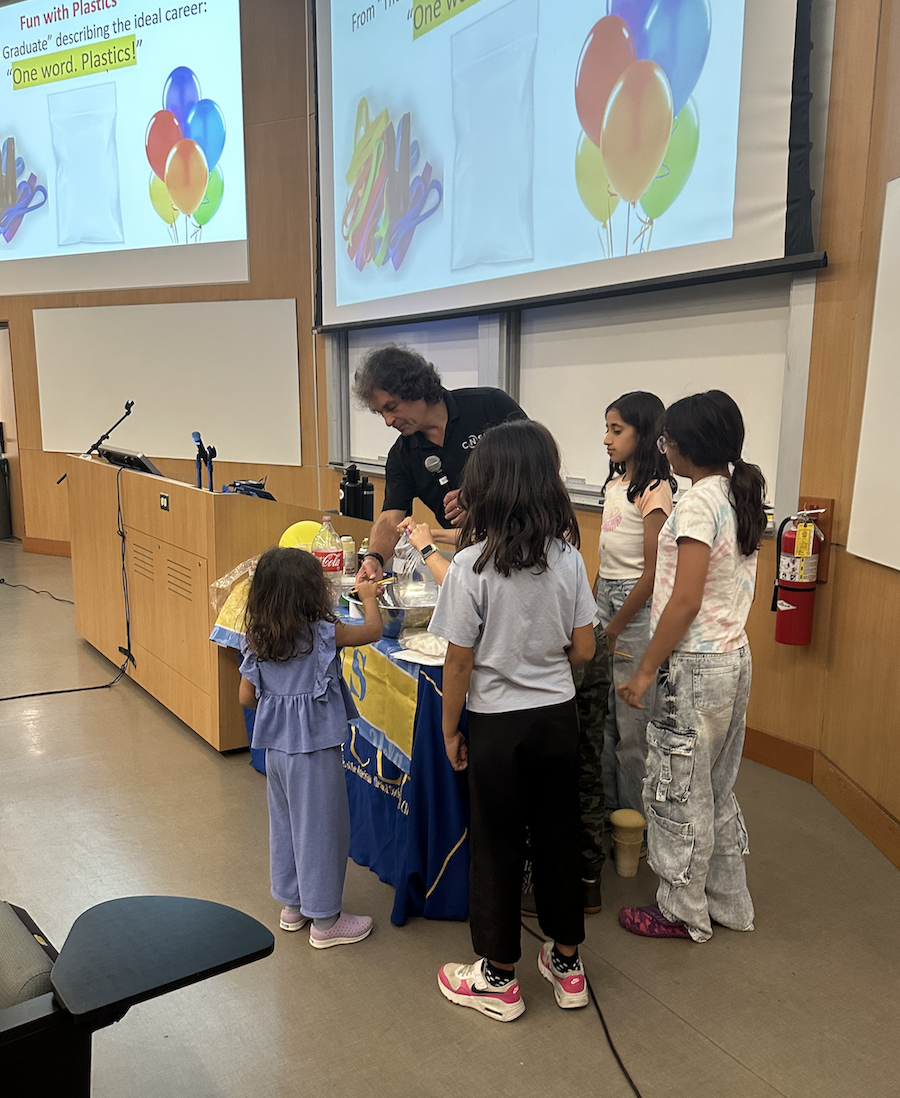 At this year’s Exploring Your Universe, Los Angeles’ largest annual science fair, Prof. Ric Kaner gave a talk titled “Fun with Plastics!” featuring hands-on polymer demonstrations for kids and families and a look at everyday questions about where plastics come from and how they’re recycled.