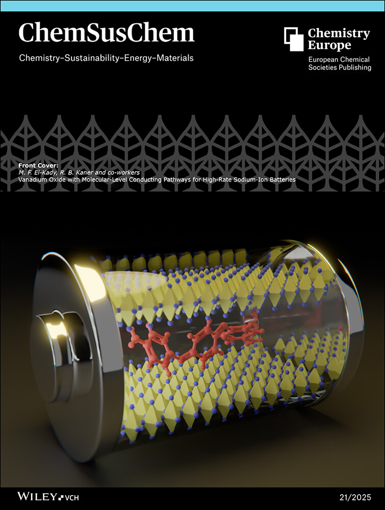 Congratulations to Zhiyin (Tara) Yang for being featured on the front cover of ChemSusChem (Volume 18, Issue 21) for her recently published article on ultrafast sodium-ion batteries based on vanadium oxide (V₂O₅) intercalated with short-chain aniline trimers (AT).